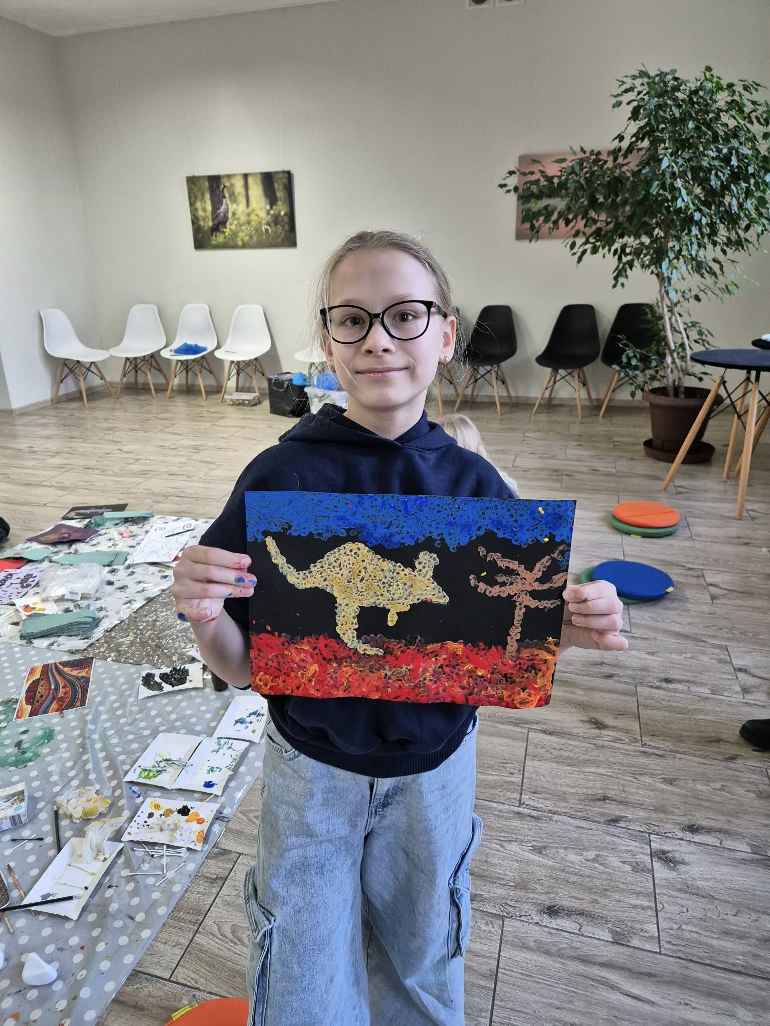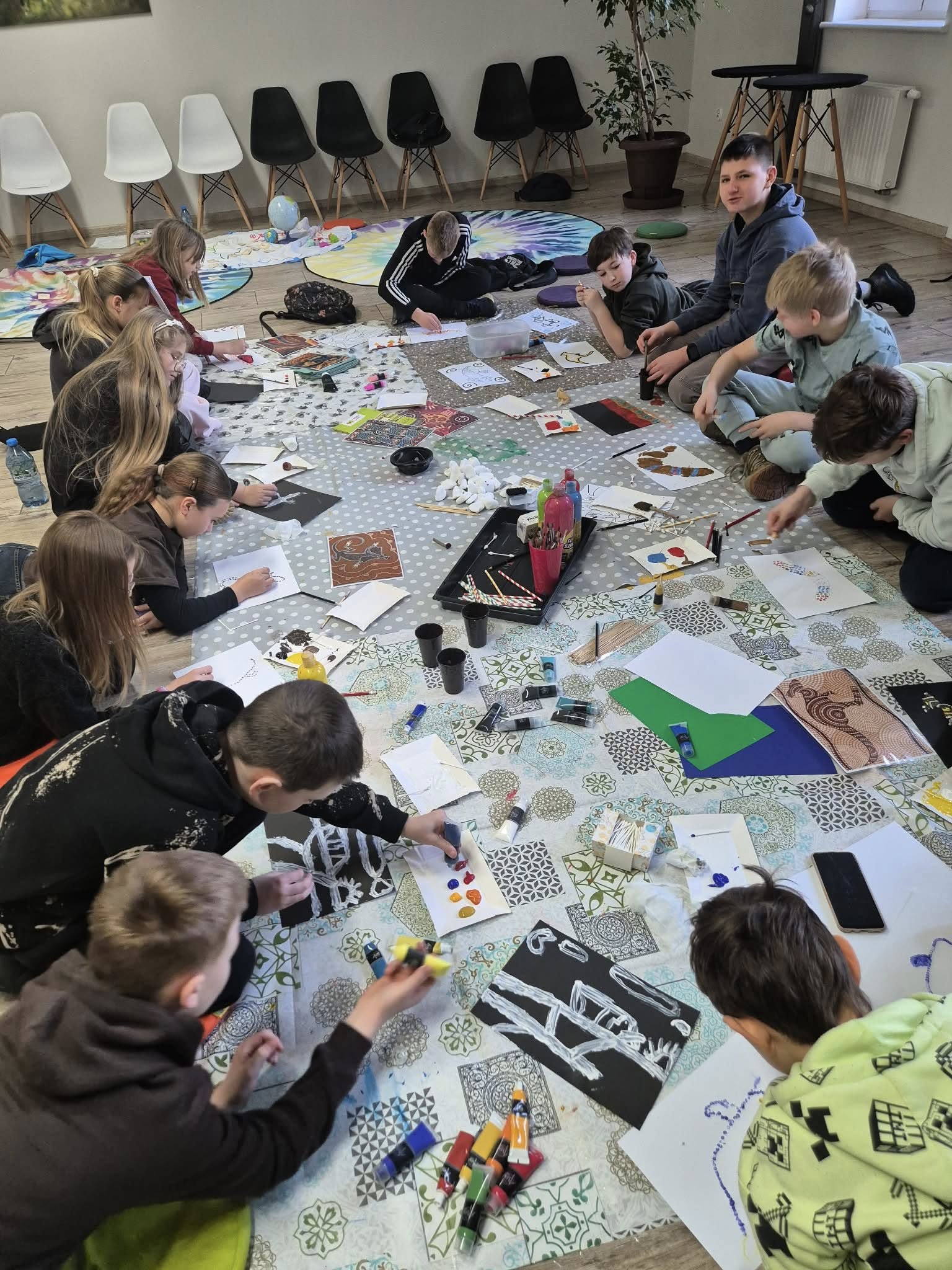 – „dot painting”. Dzięki tej technice powstały piękne i kolorowe obrazy.
