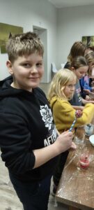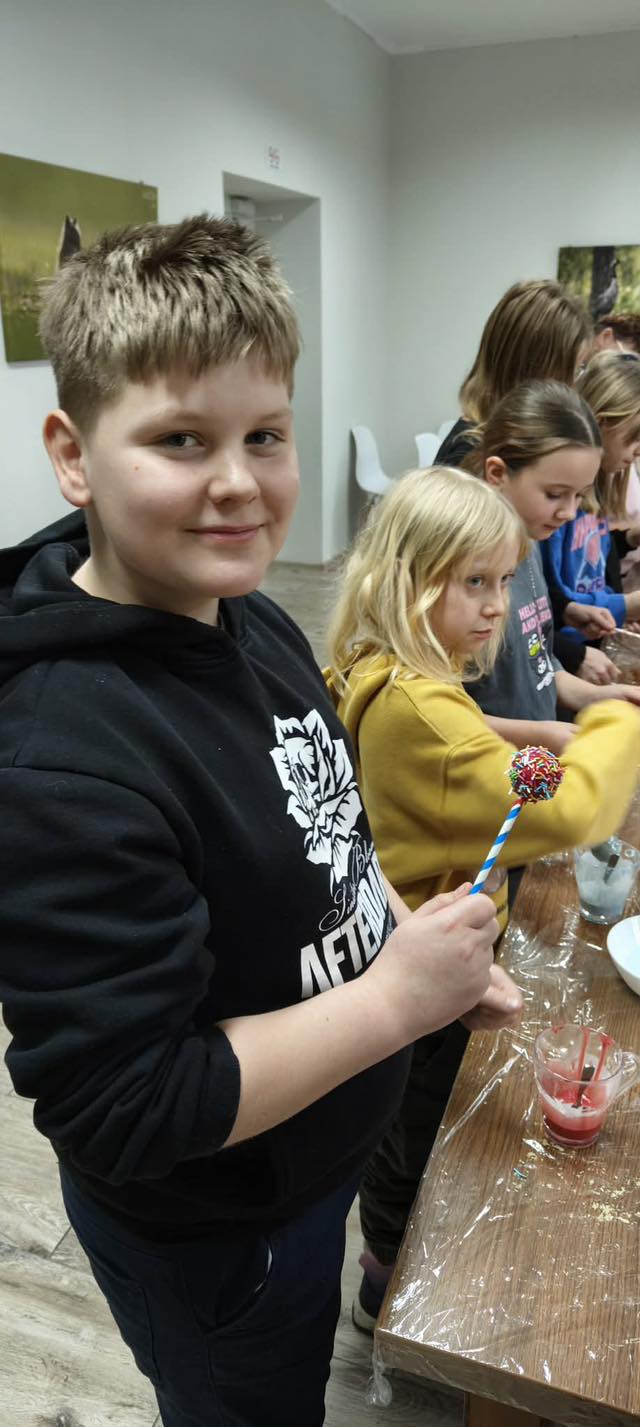 Dzisiejszy dzień był już ostatnim dniem naszych ferii. Obejrzeliśmy film, który dostarczył nam sporą dawkę śmiechu, a następnie podczas warsztatów kulinarnych poprowadzonych przez KGW Sołtysowe Babeczki z Buchowa przygotowaliśmy przepyszne, kolorowe lizaki.