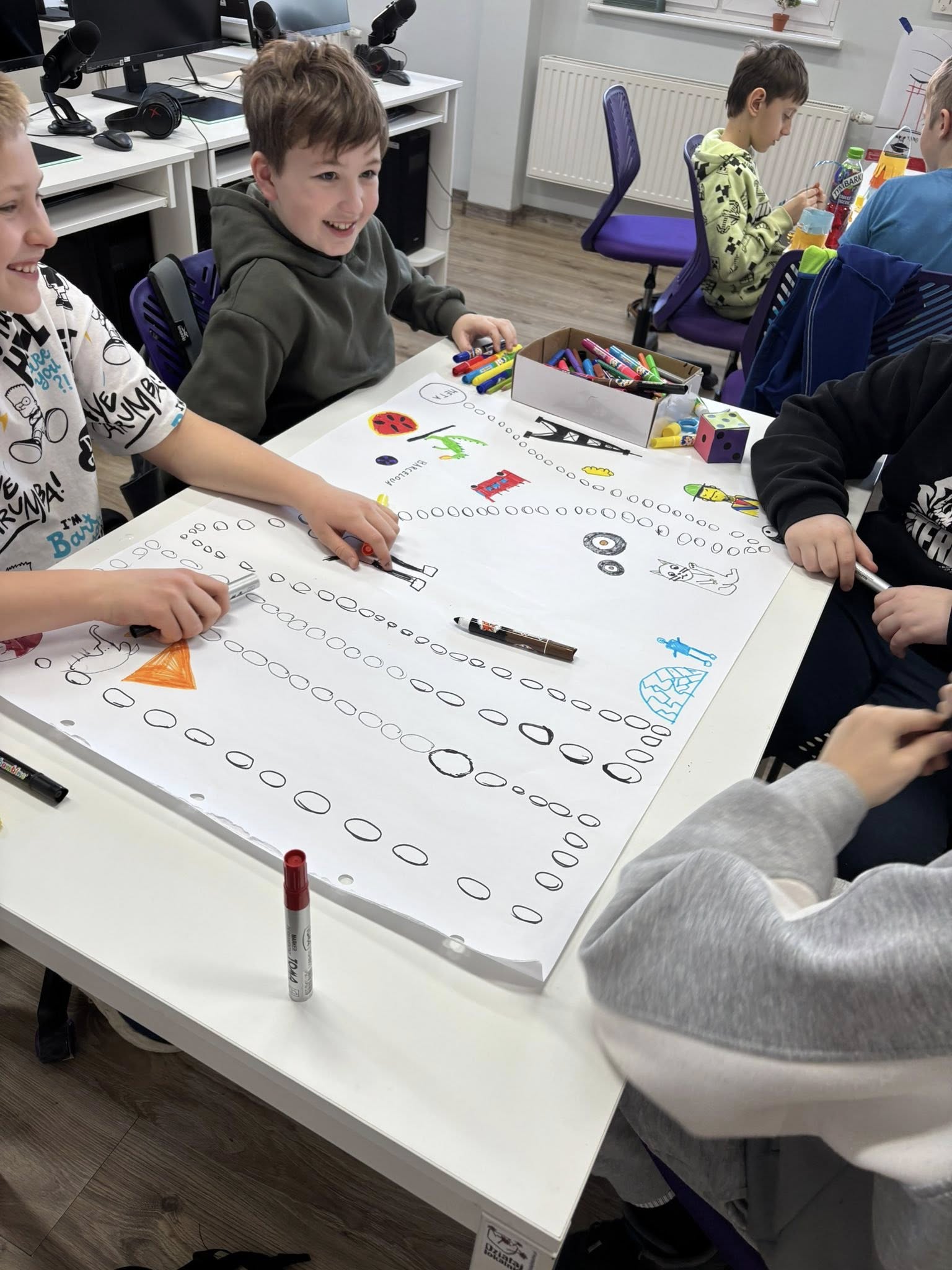 Wczoraj stworzyliśmy japońskie lampiony, przygotowaliśmy własne gry planszowe, w które później mogliśmy wspólnie zagrać, a także poznaliśmy nowy styl malowania